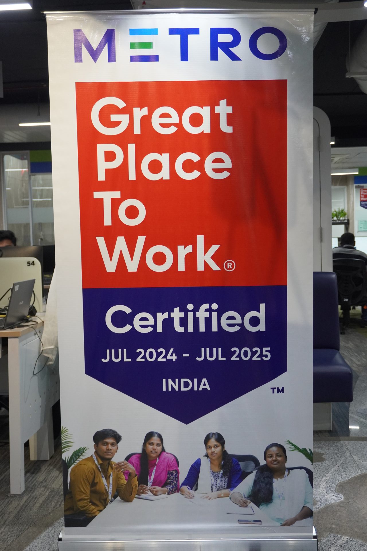 Metro has reached a significant milestone by extending its Great Place to Work (GPTW) certification to its Chennai office, reflecting the hard work and dedication of the Metro India team and affirming the company’s commitment to creating a supportive and fulfilling work environment across all its offices worldwide.